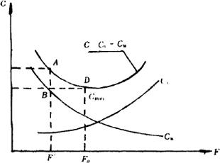 图5.1.2-1 产品费用的构成 生产成本Cv和使用成本Cu随产品功能水平的提高,往往有不同的变化。如图5.1.2-2所示。生产成本一般随功能水平(技术性能)的提高有所增长,使用成本则往往朝相反的方向变化。如若原产品的寿命周期成本是在A点,AB便代表寿命周期的降低潜力,FD代表最低总成本的最佳功能水平。从F′至FD这段表示功能可能提高的幅度,D点表示功能与成本匹配的最佳点。因而产品开发设计或老产品更新的主要任务之一,就是要使产品周期寿命费用降至最低。