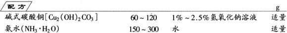 制法 按配比将碱式碳酸铜与氨水混合均匀,即为产品,可供使用。 使用时,将镀件放入上述溶液中,在室温下处理5~15min,着色后再进行固色处理,在含氢氧化钠1%~2.5%的溶液中室温下处理2min,最后涂上罩光漆,即为成品。 |
