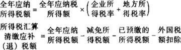 外商投资企业就来源于境外所得在境外实际缴纳的所得税税款,低于依税法规定计算出的扣除限额的,可以从应纳税额中扣除其在境外实际缴纳的所得税税款;超过扣除限额的,其超过部分不得作为税额扣除,也不得列为费用支出,但可以用以后年度税额扣除不超过限额的余额补扣,补扣期限最长不得超过五年。 这些税法规定仅适用于总机构设在中国境的外商投资企业。外商投资企业在依照税法规定扣除税额时,应当提供境外税务机关填发的同一年度纳税凭证原件,不得用复印件或者不同年度的纳税凭证作为扣除税额的凭据。 2)非居民的境外税收可作费用扣除:外国企业在中国境内设立的从事生产、经营的机构、场所,从中国境外取得的与该机构、场所有实际联系的利润(股息、红利)、利息、租金特许权使用费和其他所得,应视为来源于中国境内的所得,如果这部分所得被境外税务当局征收了所得税,其在境外已缴纳的所得税税款,除国家另有规定的以外,可以作为费用扣除。 (4)全年汇算清缴所得税额的计算: 企业应在规定期限内自行申报、计算所得税汇算清缴所属期内应纳所得税额、应纳税额、减免税额、外国税额扣除及应补退税额,并自核自缴应补缴的税款。 所得税汇算清缴计算公式如下: