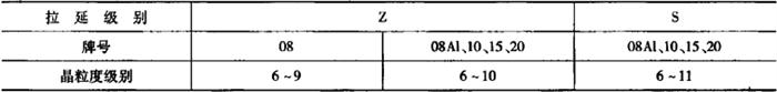 2)金相组织 ①晶粒度 用08、08A1、10、15、20号钢轧制的钢板和钢带晶粒度应符合表5-64的规定。 表5-64 晶粒度