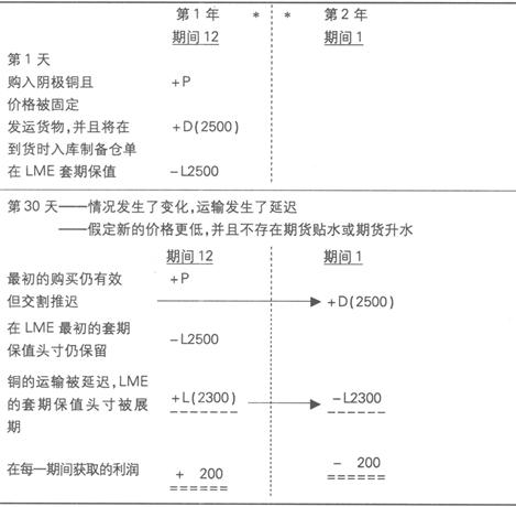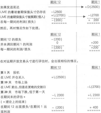 对例子的评述 上面所采取的操作使得在“期间12”时产生了一个“技术性”的利润,但同时在“期间1”时出现了损失。如果延迟出现在同一会计期间,就不会发生问题。一些会计原则试图采用保守的方法来保护股东,这些原则要求计算本期间内的期货损失(损失需要被重调回到期间12)。但对期货利润并不这样考虑,所以如果体现在期间利润时,就不必调整回来,仍然属于原来的会计期间。 因此,上面所发生的情况应作如下处理: