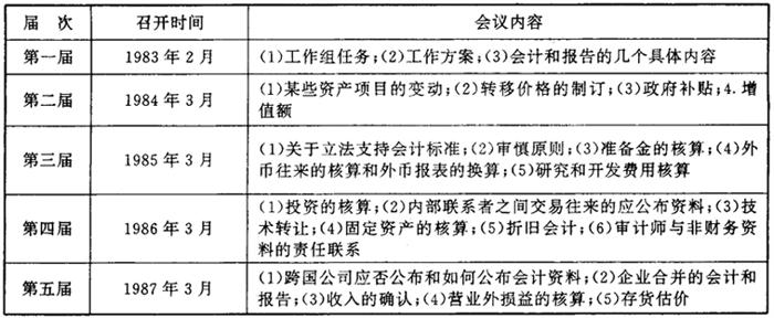 | 释义 | 会计协调的基本形式和国际组织 会计协调活动正式始于1904年在美国圣·路易斯(St.Louis)召开的第一届国际会计师大会。但到了60年代才形成通过各类国际组织进行会计协调活动的局面。它们分别是世界性政府间的组织及其协调活动、地区性专业组织及其协调活动。而每类中又有若干具体组织及其协调活动。本节在一般介绍的同时,重点介绍与中国有关的联合国国际会计和报告标准特设政府间专家工作组和国际会计标准委员会(IASC)及其协调活动。 一、世界性政府间的组织及其协调活动 这种协调形式是为了促进不同国家之间会计实务或财务报表信息的统一与可比,由国际或地区性政府间组织直接协商,判定统一的会计规则,责成各国实施。 (一)联合国(UN) 联合国是由160多个国家或地区组成的最大国际组织。随着国际经济与合作的发展,各国不一致的会计实务和财务报告给会计信息的使用带来了极大的不便。发达国家跨国公司也开始涉足各国经济利益,发展中国家普遍要求对跨国公司及其子公司加强管制,以保护本国权益。为此,联合国于70年代初开始参与会计协调活动。 1.负责协调的内部组织 1973年,联合国秘书长应经社理事会(ECOSOC)的要求任命了一个权威人士小组,研究跨国公司对经济发展和国际关系的影响。工作组于1974年的报告中指出:“关于跨国公司的活动,合用的财务资料和非财务资料严重缺乏,公司报告可以相互比较之处不多。”建议在跨国公司委员会主持下召集一个专家小组,制订一种国际可比较的标准化会计和报告制度。 1976年初,国际会计和报告标准专家工作组,总共有14名成员。该工作组提出了《跨国公司会计和报告国际准则》的报告。由于各成员均以个人身份出任,不是政府代表,跨国公司委员会于1978年未承认该报告。 1979年在专家工作组的建议下,经社理事会通过了设立国际会计和报告标准特设政府间专家工作组的决议。新的工作组共有34名代表,均由当选国家任命一名在会计和报告方面有经验的专家担任。特设组的中心任务是研究进一步在联合国体制范围内拟定一套为国际所接受的会计与报告标准,以便能使有关方面取得更多的关于跨国公司经营活动的资料,并使这些资料更易相互比较。自1980年2月至1982年4月共举行六次会议,其中两次有中国代表参加。1982年6月向跨国公司委员会提交一份总结报告,其中提出会计报告至少应包括的内容,即“普遍报告的基本项目”共307条文字。最后请求设立一个国际机构,负责审议属于跨国公司委员会工作范围的会计和报告问题。 1982年联合国经社理事会据此建立国际会计和报告标准政府间专家工作组,仍由34国代表参加,中国也派员参加。由联合国跨国公司委员会每年审查,并决定其是否继续工作下去。 2.政府间专家工作组的五届会议及其内容 联合国国际会计和报告标准政府间专家工作组自1983年至今已开过五届会议(内容见图表)。作国际会计领域内最具普遍代表性的政府间国际组织,它的初步成果在联合国内外受到越来越广泛的重视,其工作仍在继续。 图表5-1-1 联合国国际会计和报告标准政府间专家工作组会议情况