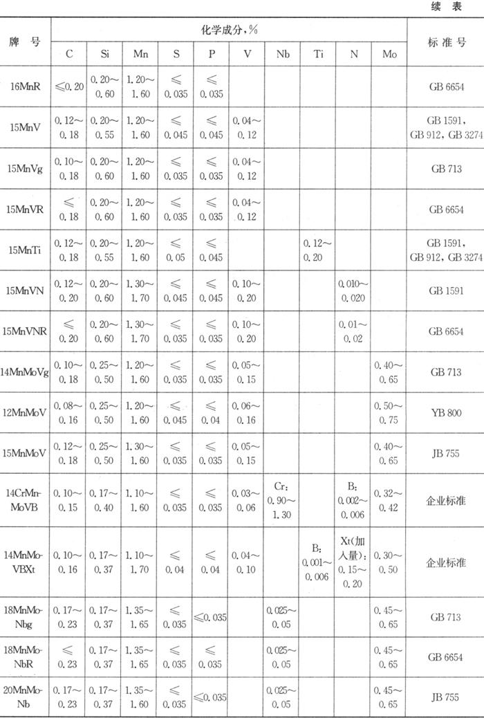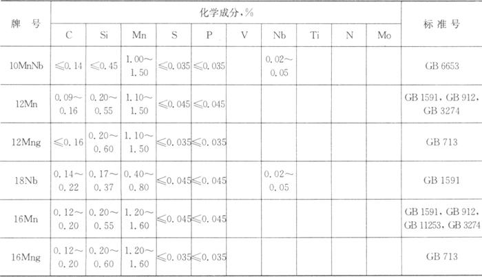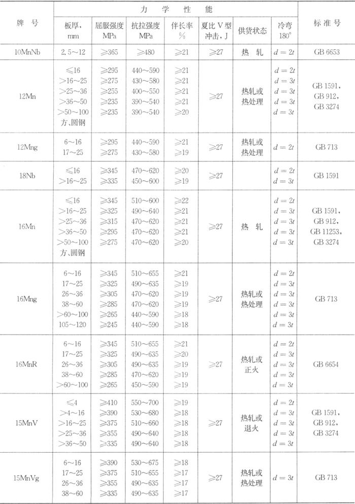 表2.1-1、表2.1-2分别列出我国常用低合金结构钢的化学成分和力学性能。
