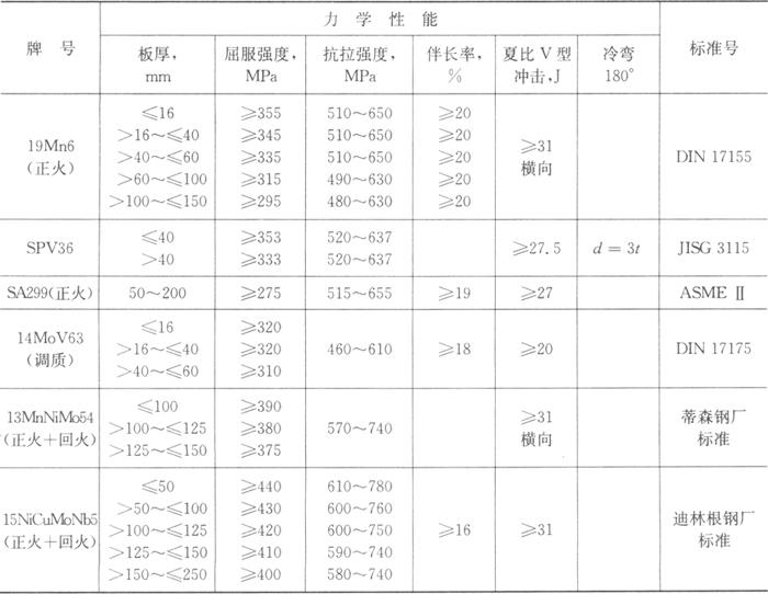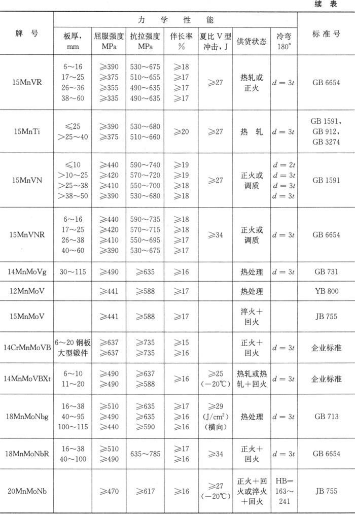 表2.1-3、表2.1-4分别列出世界各国常用低合金结构钢的化学成分和力学性能。