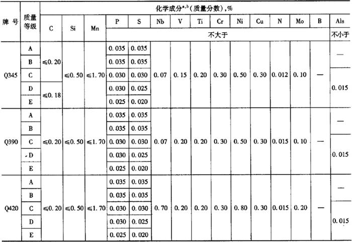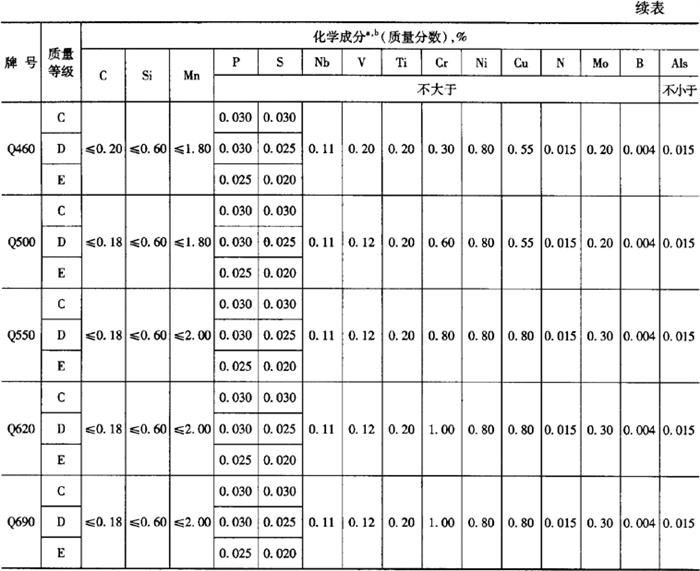 | 释义 | 低合金高强度结构钢 1.牌号及化学成分 1)钢的牌号及化学成分(熔炼分析)应符合表5-14的规定。 表5-14 钢的牌号及化学成分(熔炼分析)