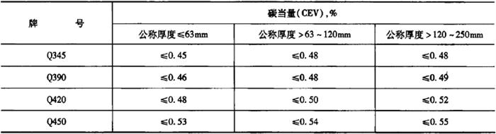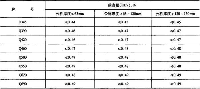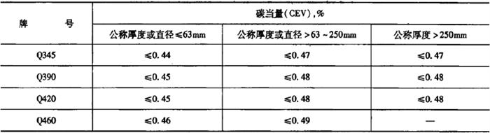 表5-17 热机械轧制(TMCP)或热机械轧制加回火状态交货钢材的碳当量