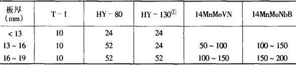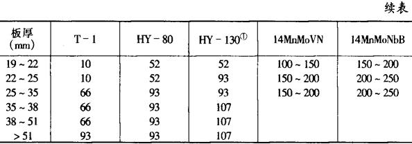 表10-14 几种低碳调质钢的最低预热温度与层间温度