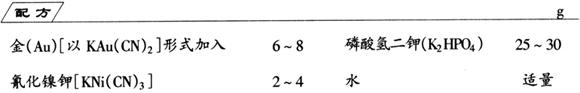 制法 按配比用水将其余3种物料溶解均匀,即得镀金液。 电镀条件:调节pH值为6.5~7.5,阴极电流密度为0.2~0.4A/dm2,以不锈钢作阳极,在室温下使用。这种镀金溶液毒性较低,均镀能力、深镀能力较好,镀层孔隙率低,可焊性好。特别适应于印刷电路板插口的镀金和其他电子元件的镀金。 |