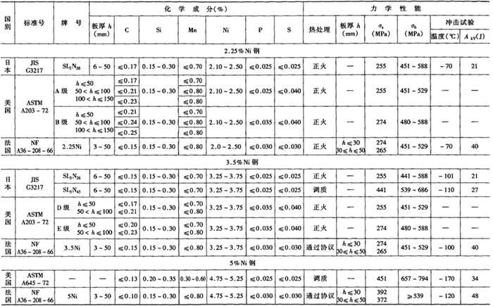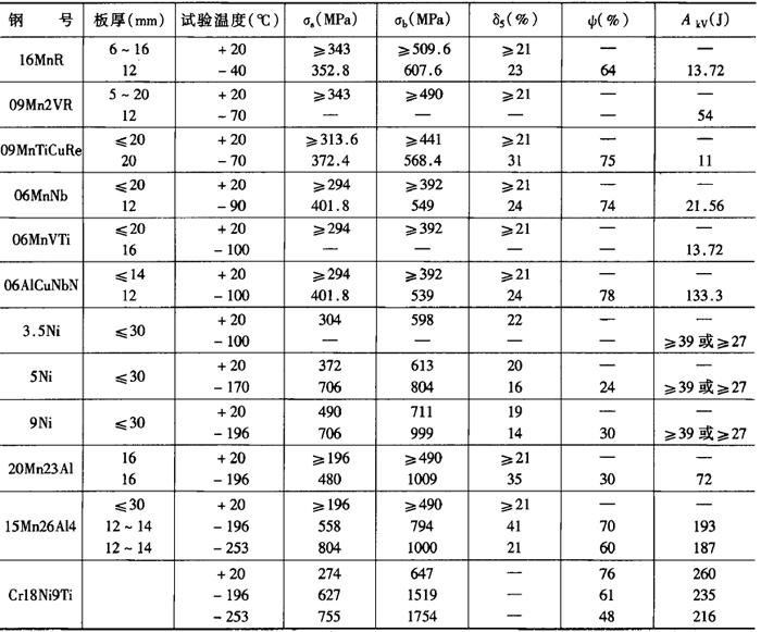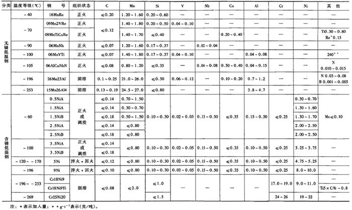 | 字词 | 低温钢的化学成分和力学性能 |