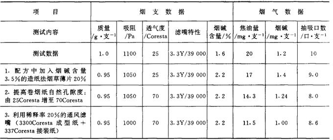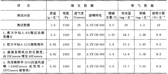 3.技术措施 见表6-4-8。 表6-4-8 低焦油卷烟设计简例A技术措施