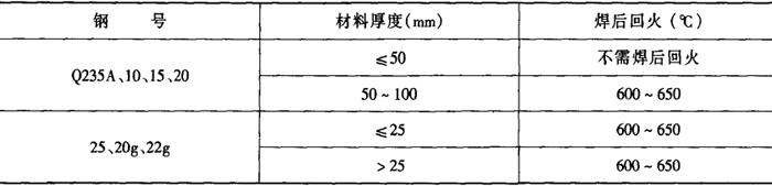 (4)焊后热处理 对于刚性比较大的构件,宜采用焊前预热,焊后消除应力的热处理工艺。焊后热处理工艺参数见表2-2-24。 表2-2-24 焊后热处理工艺参数[4]