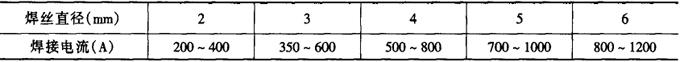 注:焊丝直径5mm,交流电源。 表2-2-29 不同直径的焊丝所应采用的焊接电流[4]