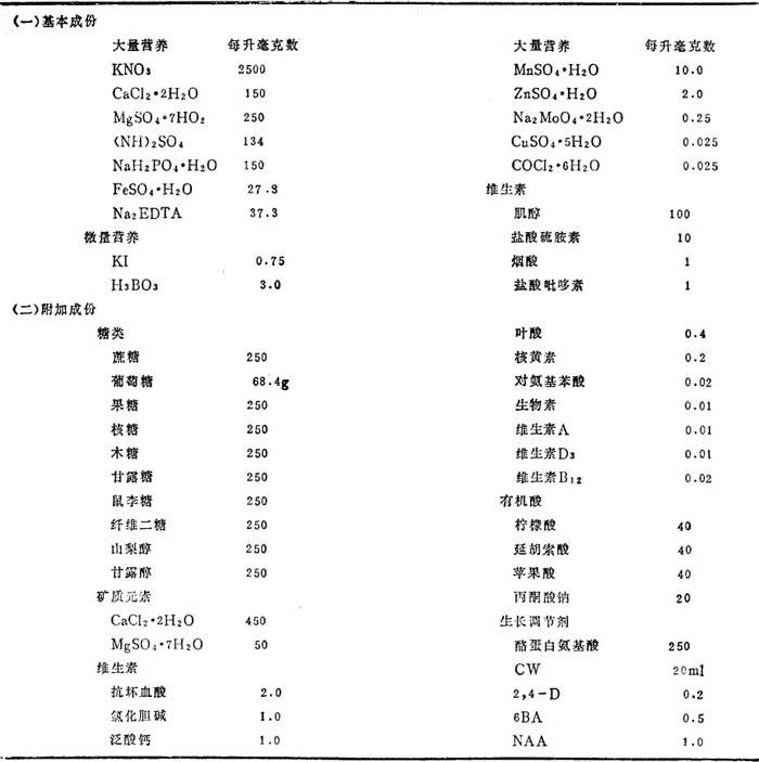 表6-9 Kao和Michayluk(1975)的8P原生质体培养基