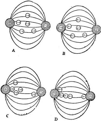 PEG融合法只需稍加修改就能用于各种植物。(1)许多作者认为用分子量为6000的PEG不如用分子量为1540的PEG,在动物细胞融合上,Klebe和Mancuso(1981)试验过7种不同PEG试剂,即分子量为200、400、600、1000、3000、6000和20000的PEG。PEG的适宜分子量是600,其次是1000。200和20,000的PEG对细胞融合无效。(2)PEG的浓度也有变化。已报道用浓度为10-50%PEG是成功的。(3)程序中的第四步是最重要的,已进行过详尽研究。改变除去分离原生质体中的降解酶和PEG聚积之间的时间。适宜的培育时间为5min。经2h培育后,导致融合频率从9%下降到2%。(4)仔细配制和贮藏PEG洗涤溶液也很重要(表6-6)。困难的是遇到这个溶液常发生氢氧化钙沉淀。向PEG溶液中加入豆球朊(con A)能改善PEG方法。许多报道指出加刀豆球朊(con A)能强化PEG诱导的原生质体融合产物粘附。因而,在洗涤融合混合物后保留更多融合产物。这个处理导致小而显着增多的异核体。加二甲基亚砜(DMSO),也提高融合频率。向PEG溶液中加15%DMSO提高3-13%的融合频率。可以假定,DMSO造成细胞更易受PEG影响,这个处理也对动物细胞融合有效。用20%以上DMSO对细胞生长也无抑制效应。 2.电融合 1986年提出的电穿孔技术,大大地简化了电融合的技术措施。采用电场法融合原生质体分二个步骤:第一步用交流电场(AC)把邻近细胞的膜紧紧地接触在一起,这种过程叫双电泳。第二步采用短时间直流电(DC)冲击,破坏紧靠着的细胞间质膜,经DC(方形波)冲击达到细胞融合。 双电泳作用是把细胞收集在电场内,是用DC场的一般电泳过程相反。在电泳中,只有荷电粒子移动;非电荷的或无净电荷粒子将是静止的。但是,双电泳中粒子可能是正电荷、负电荷或电中性(无净电荷)和仍待供收集的。这是由于电场内的AC性质决定的。就是二极间的粒子受到瞬间改变中电场影响(从几十万到几百万分之一秒),将诱导粒子产生短暂的二极,因此即使是中性粒子,在AC场内也会产生二极,从而走向最近的电极(图6-1)。