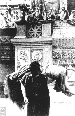 | 释义 | 你往何处去 【片头介绍】: 1912 黑白片(无声) 3000米 意大利西乃斯公司摄制 编导:恩里科·瓜佐尼(根据显克微支同名小说改编) 摄影:乔瓦尼·维特罗蒂 库尔·库克 主要演员:塞雷纳(饰彼得罗留斯) 卡斯戴拉尼(饰乌尔苏斯) 【剧情简介】: 故事发生在尼禄统治下的罗马帝国。 公元64年,尼禄这位不可一世的暴君感到自己的政权开始受到了威胁:罗马行政长官佩达尼乌斯遭到了暗杀。遇害前,佩达尼乌斯正在对从事秘密活动的基督教徒进行调查。于是,他只好另派自己的宠臣彼得罗留斯继续调查。 彼得罗留斯是个着名文人,虽然他深受皇帝的宠爱,在宫廷中颇有势力,但他深知,自己只不过是皇帝的御用文人而已,随时随地有被加害的危险。 因此,他处事小心谨慎,同时对人民宽厚为怀,所以对调查并不积极。这时,他的惟一亲人,外甥维尼兹尤斯出征巴提阿胜利归来。在一次聚会上,维尼兹尤斯认识并爱上了漂亮姑娘莉吉娅。她是个从小作为人质留在罗马的外国首领的女儿,父母双亡后,便被大臣普鲁因斯收养。 同她朝夕相处的有随身卫士、大力士乌尔苏斯。莉吉娅是个基督教徒。 当时,基督教被统治集团视为异端,但维尼兹尤斯同莉吉娅及其朋友相处中,发现了基督教徒的高尚品德,思想上亦发生了变化。他想娶她为妻,便求舅父彼得罗留斯向尼禄请求,将她赐给自己。 尼禄挥霍无度,常在宫廷中举行通宵达旦的舞会,令宫女们跳裸体舞。应彼得罗留斯的请求,尼禄派人将莉吉娅接到宫中,参加晚会,算是默许了这桩婚事。 晚会上,活泼可爱的莉吉娅能歌善舞,博得了尼禄小女儿的欢心。两人一起玩耍至深夜。次日,小女孩得了一种神秘的怪病,巫师们说,这可能是莉吉娅身上的邪气影响了小女孩。不久,尼禄的小女儿死去。 尼禄忧伤悲愤。听信巫师,迁怒于莉吉娅。 他竟然下令,将所有的基督教徒处死。基督教徒们东躲西藏,维尼兹尤斯为此惶恐不安。 一日,残忍的尼禄令禁卫军在罗马四处放火,他则带着群臣,在罗马近郊山上观望大火。这时他诗兴大发,即席作诗,渴望自己像荷马一样能够垂名青史。 但他哪里知道,这场大火烧毁了大半个罗马城。他的罪恶行径引起了罗马人民的激愤,一场骚乱即要发生。尼禄只好派深得人心的彼得罗留斯去进行平息,同时又派人四处散布谣言,说是基督教徒放的火,以转移人民对皇帝日益增长的不满。 于是,一场对基督徒的大迫害开始了,莉吉娅等人被捕入狱。 基督教徒们被一批批带进角斗场,有的喂了猛虎雄狮;有的惨死在角斗士的棍棒下。最后轮到莉吉娅受刑了。 她被剥去衣服,绑在一头凶猛的公牛的两角之间。公牛在角斗场上狂奔,这时,大力士乌尔苏斯突然出现。 他冲上前去,运用两臂的神力,将公牛摔死,从而救出莉吉娅。 彼得罗留斯为未能劝阻尼禄放火的罪行而惭愧。他不愿再在尼禄的宫廷里供事,便回到罗马乡下的家中,平静地自杀身亡。对他忠心耿耿的女奴艾尼丝也心甘情愿地随他而去。 罗马人民忍无可忍,终于发生了叛乱。尼禄在混战中,终于结束了自己罪恶、凶残的一生。 。【鉴赏】: 这是意大利第一部长故事片,改编自波兰作家显克微支曾获得诺贝尔奖的同名小说(1896年出版)。 原小说描写尼禄统治下的罗马历史,其故事情节曲折离奇,引人入胜。尼禄是罗马公元54~68年的皇帝。他骄奢淫逸,嗜血成性,深为人民所痛恶。公元64年,在他纵火毁烧罗马城后,人民便开始酝酿暴乱,同时元老院也对他日益不满。 元老院在68年终于对他下了死刑判决。他在起义者的包围中,被迫自杀,死时年仅30岁。 这部以古罗马为背景,反映暴君尼禄的影片,不仅征服了欧洲观众,还在美国多次放映(最后一次发行是在1919~1920年),为制片人赚回了原投资(50万里拉)的10至20倍的钱。雕塑家罗丹将其誉为“杰作”,是意大利电影初创期辉煌的历史宫闱片之一。 影片吸引人,不仅在于它的长度,还因为制片人不惜巨资,搭建了宏伟的罗马宫殿,组织了壮观的群众场面,如罗马的大火,御花园的人灯,皇宫的盛大宴会。另外,有许多特技的壮观场面令人惊奇和赞叹:如战车狂奔,炮火连天;竞技场的角斗以及把基督教徒仍进狮群等。 演员的演技亦备受赞赏,尤其是塞雷纳所饰演的狡猾的彼得罗留斯,卡斯戴拉尼所饰演的健壮活跃的乌尔苏斯更为人广泛称颂。卡斯戴拉尼的成功表演甚至受到了英王乔治五世的庆贺。 影片的成功激励并推动了长故事片的生产,而且也常常为后人所仿制或重拍。首先,在国内,敏锐的意大利电影企业家意识到,把意大利的历史古迹和风景作为影片的背景去使用,使影片更具有感染力。 于是,西乃斯和意大拉等大影片公司,相继拍摄了从荷马史诗到莎士比亚,从但丁作品到圣经故事的历史题材影片。 其中,最有名的是1914年摄制的大型故事片《卡比利娅》和其他古装片如《奥瑟罗》和《庞贝城的末日》等影片。这种以古建筑遗址为背景加上高超的雕刻技艺,为意大利早期电影带来了创作的繁荣。 其次,影片在其他国家,尤其是美国上映后,不仅受到观众的喜爱,更启发了电影工作者的深思。 它的技术革新和壮观场景设计使电影业发生了一次重大的革命。它那种使观众超越时空,恍如置身于影片中的自由表现手法就直接影响了格里菲斯,后者在仔细研究了《你往何处去?》、《卡比利娅》等片之后,即成功地拍摄了《党同伐异》中的巴