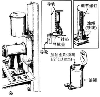 图18.1-3 典型的导轨润滑装置示意 ①油盒内的油大约可以使用2~3个月。 ②要定期检查油盒内润滑油的流量,根据需要调整流量。 |