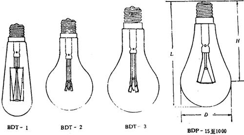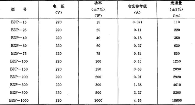 图9.4-4 BDT型光通量标准灯 另一个光通量标准灯系列是BDP型,它是按灯泡的功率排列的,灯泡的结构与平常使用的普通照明用光源很相似,为灯泡生产部门所广泛采用,主要光电参数如表9.4-4所示。 表9.4-4 BDP型光通量标准灯