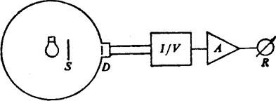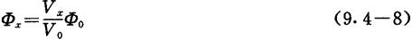 图9.4-5 积分球光度计 E=KΦ (9.4-7) 式中K是一个比例常数,与球的直径和球壁的反射率有关。因光电光度计的输出信号正比于其表面上的照度,所以当球心上挂的是标准灯时,得到一个输出V0,随后取出标准灯,放进待测灯,又可得到一个输出信号Vx,则
