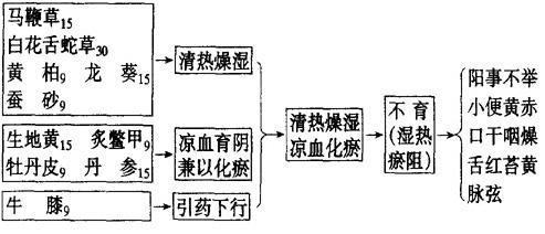 【要点】 本方为不育症而有下焦湿热证候者而设,故以清热燥湿解毒之品为主,热耗阴液故配益阴之品,热致血瘀故配凉血活血之品。白花蛇舌草、龙葵等品有调节免疫功能之效能。