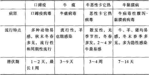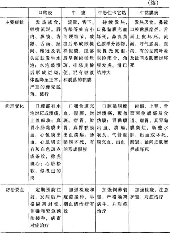 附表7 牛口蹄疫、牛瘟、牛恶性卡它热、牛黏膜病鉴别
