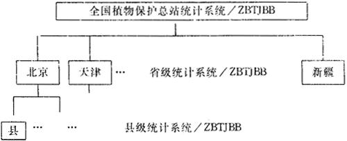 一、全国植物保护专业统计信息系统 (一)概述 建立自下而上统一的统计信息系统,是统计工作科学化、现代化发展的必然趋势。在某一专业范围内建立全国统计信息网,需要科学规范的指标体系和分组体系构成的既统一又适应各级统计工作特殊要求的统计系统。以保证数据上报、传递和汇总的方便。同时该系统应能适应指标体系、分组体系以及报表样式的不断变化,保持在较长时间内统计信息的前后一致性,以便统计分析工作的正常进行。要建立这样的统计信息系统,各工作站需要统一的软件支撑环境,以保证标志(指标)编码的标准和规范,数据格式的一致以及数据库结构的统一,同时需要易学易用的软件开发工具,以保证各级系统的快速建立和修改。“统计报表自动处理系统TJBB”的功能完全适合这一需要,是建立统计信息网极好的工具。 “全国植物保护专业统计信息系统”ZBTJBB自1992年开始采用TJBB作为支撑环境和开发工具,1993年初建成的“全国植物保护总站统计系统”已顺利完成1992、1993年的统计工作。目前已初步建成的全国统计信息网的结构如图6-2所示。