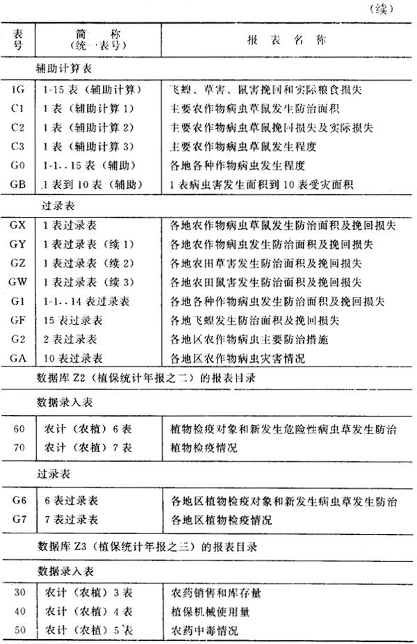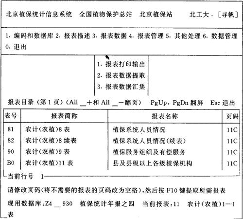 3.统计报表 数据库Z1(植保统计年报之一)的报表目录