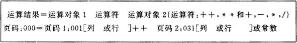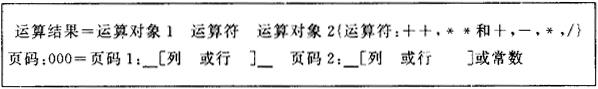 图6-38 农计(农植)1表第000页的页公式定义 运算符可以是+,一,*,/,+ +(连加)和* *(连乘)。填好后页公式会自动放入该页计算公式栏中(如图6-35所示)。 (6)总标题描述 在报表目录中,将光标移至所描述表的“总标题”栏中,按F10键,这时屏幕将出现如下式样的总标题描述空表。农计(农植)1表的总标题描述填写如图6-39。