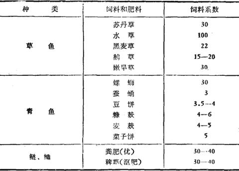 注:饲料系数为鱼每增长1公斤需饲料和肥料公斤数。粪肥和稗草主要培育浮游生物 |