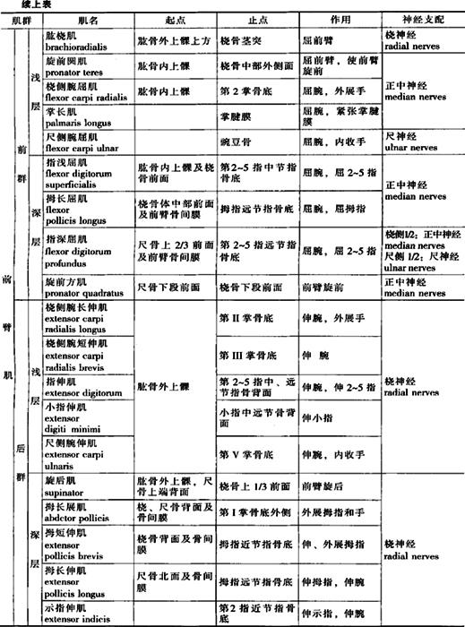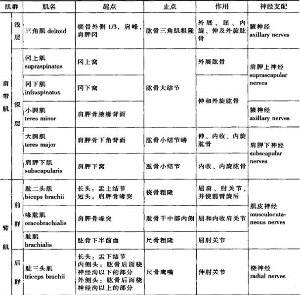 (四)上肢肌 上肢肌(muscles of upper limb)可分为肩肌、臂肌、前臂肌、手肌。详见表3-6(图3-18A、B)。 表3-6 上肢肌