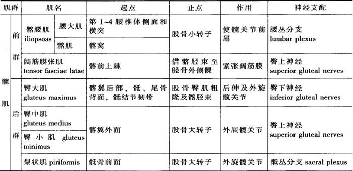 1.肩肌 主要有三角肌(deltoid)、大圆肌(teres major)、肩胛下肌(subscapularis),肩肌配布于肩关节周围,运动肩关节,并增强肩关节的稳固性。 2.臂肌 臂肌位于肱骨的周围,分前群(屈肌群)和后群(伸肌群)。前群位于肱骨的前部,有肱二头肌(biceps brachii)等,该肌群主要功能是屈肘关节,协助屈肩关节。后群位于肱骨后部,有肱三头肌(triceps brachii),其作用伸肘关节,并使上臂后伸并内收。 3.前臂肌 包绕尺骨、桡骨,分前后两群。前群位于臂前面和尺侧,共有9块肌肉,其作用主要是屈腕关节、掌指关节和指间关节。后群位于前臂的背面和桡侧,共有10块。其作用与其名称一致,主要是伸腕关节、伸掌指关节、伸指间关节。 4.手肌 是一些短小的肌,集中配布于手的掌面,主要运动手指,分为外侧、内侧和中间三群。其中位于手掌中间部分的,包括4块蚓状肌(lumbricales)、3块骨间掌侧肌(palmar interosseous)和4块骨间背侧肌(dorsal interosseous)。蚓状肌作用是屈掌指关节伸指间关节,骨间掌侧肌使手指内收(向中指靠拢),骨间背侧肌使手指外展(手指张开),见表3-6。 (五)下肢肌 按部位可分为髋肌、大腿肌、小腿肌和足肌四部分,见表3-7(图3-18A、B)。 1.髋肌 配布于髋关节周围,起自骨盆,止于股骨,主要运动髋关节。髋肌可分为前后两群。 表3-7 下肢肌