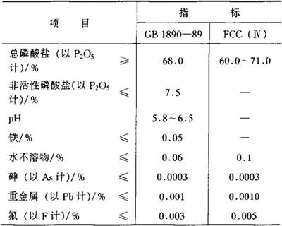 鉴别方法 本品呈钠离子反应和磷酸盐反应。 1.钠离子反应 将铂丝用浓盐酸湿润后,沾取本品少许,在无色火焰上燃烧,火焰呈鲜艳黄色。 2.磷酸盐反应 取本品中性溶液,加硝酸银溶液(20g/L),即发生浅黄色沉淀,分离沉淀,沉淀在氨溶液(2+3)或硝酸溶液(6mol/L)中易溶解。 毒理学依据 1.LD50 大鼠口服7250mg/kg(bw)。 2.GRAS FDA-21CFR 182.6760。 3.ADI MTDI 70mg/kg(bw)(以各种来源的总磷计。FAO/WHO,1994)。 使用 水分保持剂、品质改良剂、pH调节剂、金属螯合剂等。 1.使用注意事项 本品可单独使用,也可与其他磷酸盐配制成复合磷酸盐使用,但总磷酸盐不能超过国家规定,具体参见磷酸三钠。 复合磷酸盐的配方(%)如下表:
