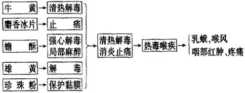 【要点】 药品皆轻灵之品,小量即可为功,以适用喉证之需要。因本药用法通常为含化,经唾液溶化药物,通过咽部,发挥消炎止痛多用。