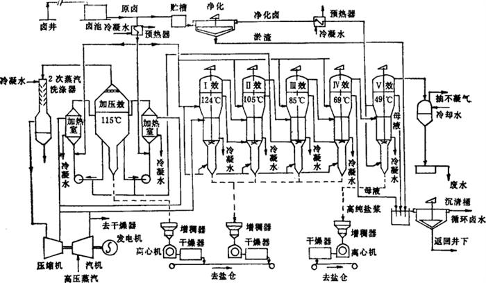 | 释义 | 其他参考流程图 (一)硫酸钙型卤水热压与多效蒸发制盐工艺流程图例 见图3-4-22。