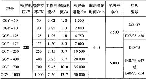 表9-23 GGY型荧光高压汞灯的主要技术数据