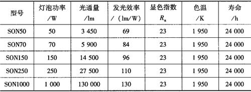 表9-24 普通型高压钠灯(SON型)的主要技术数据