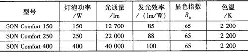表9-26 舒适型高压钠灯(SON Comfort型)的主要技术数据