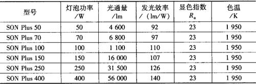 表9-27 高光效型高压钠灯(SON Plus型)的主要技术数据