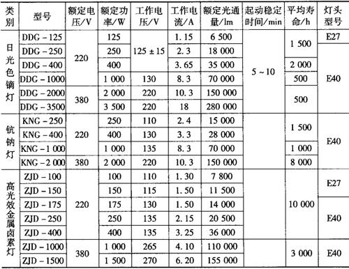 表9-28 金属卤化物灯的主要技术数据