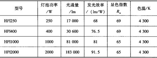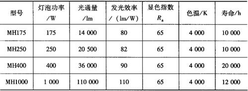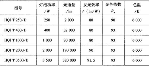 表9-30 高光效金属卤化物灯的主要技术数据