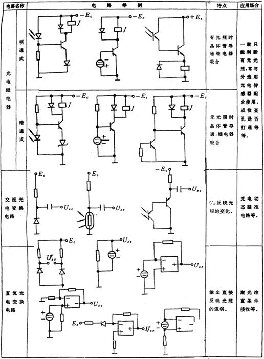 (2) 光电变换电路 在测量仪器中常使用光电二极管,光敏电阻,硅光电池,充电三极管作为光能控测元件,表3.4-2列出0常用的光电变换电路。 表3.4-2 常用运算电路