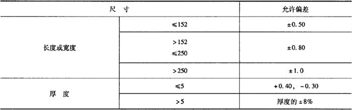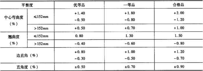 表16-9 釉面砖平整度、边直角和直角度的允许范围