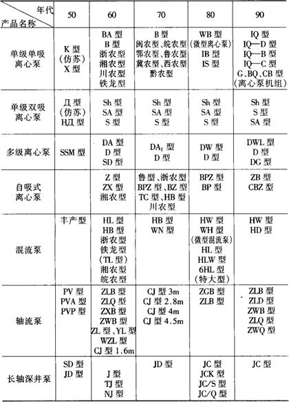我国生产的农用水泵新老产品型号一览表见表8-2。 表8-2 农用水泵新老产品型号一览表