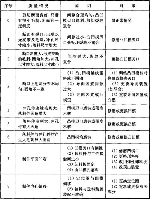 表4-26 冲裁质量分析