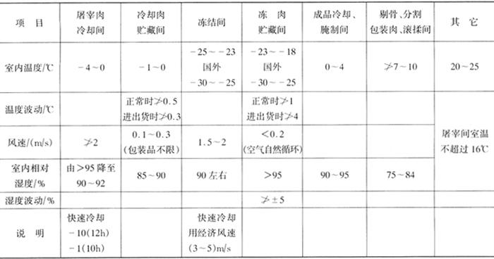 表4-4-1 肉类加工厂耗冷部门及要求