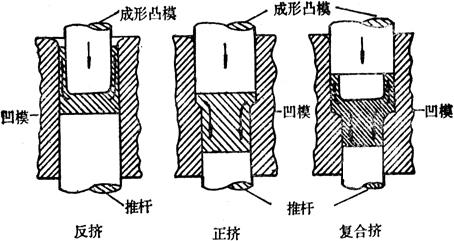| 释义 | 冷挤压模材料的选择 在冷挤压过程中,模具和工件都不经预热。不过,当在稳定和接近于均衡压力下,工件塑性变形所产生的热量已足以要求工具钢必须在温度提高的情况下具有相当高的抗软化特性。 在冷挤压过程中,如图51左边所示,在一个闭合的凹模内,工件金属有着一个与凸模运动方向相反的反向位移。这种工件常是杯形,它的壁厚等于凸凹模之间的间隙。
