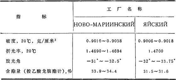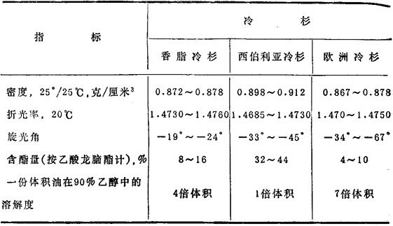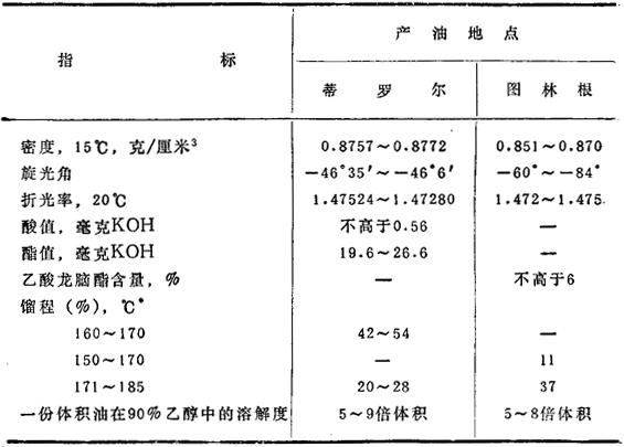 苏联克麦罗沃工厂生产的冷杉油性质见表35.2。 表35.2 克麦罗沃冷杉油的物理化学指标