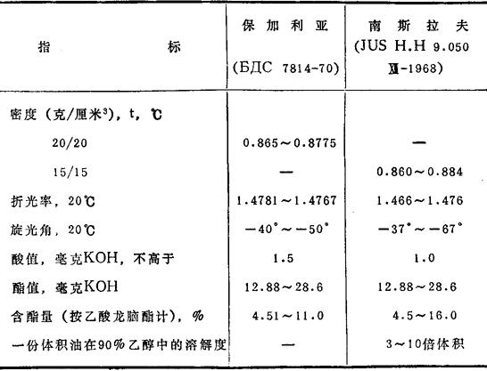 表35.5 根据各国标准冷杉油的质量指标