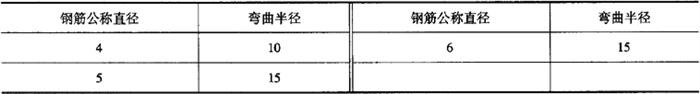 注:表中D为弯心直径,d为钢筋公称直径。 表5-32 冷轧带肋钢筋反复弯曲试验的弯曲半径mm