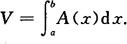 图7.6 过点x且垂直于x轴的截面面积A(x)为x的已知连续函数,体积元素为 dV=A(x)dx, 立体体积为