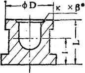 图2-2 柱塞头 根据经验,对拉脱力有影响的主要有四个因素:柱塞头的外径D,高度L,倒角K×β°和收口油压。并把每个因数取三个不同水平,见表2-1,试验方案见表2-2。 试验考察因数